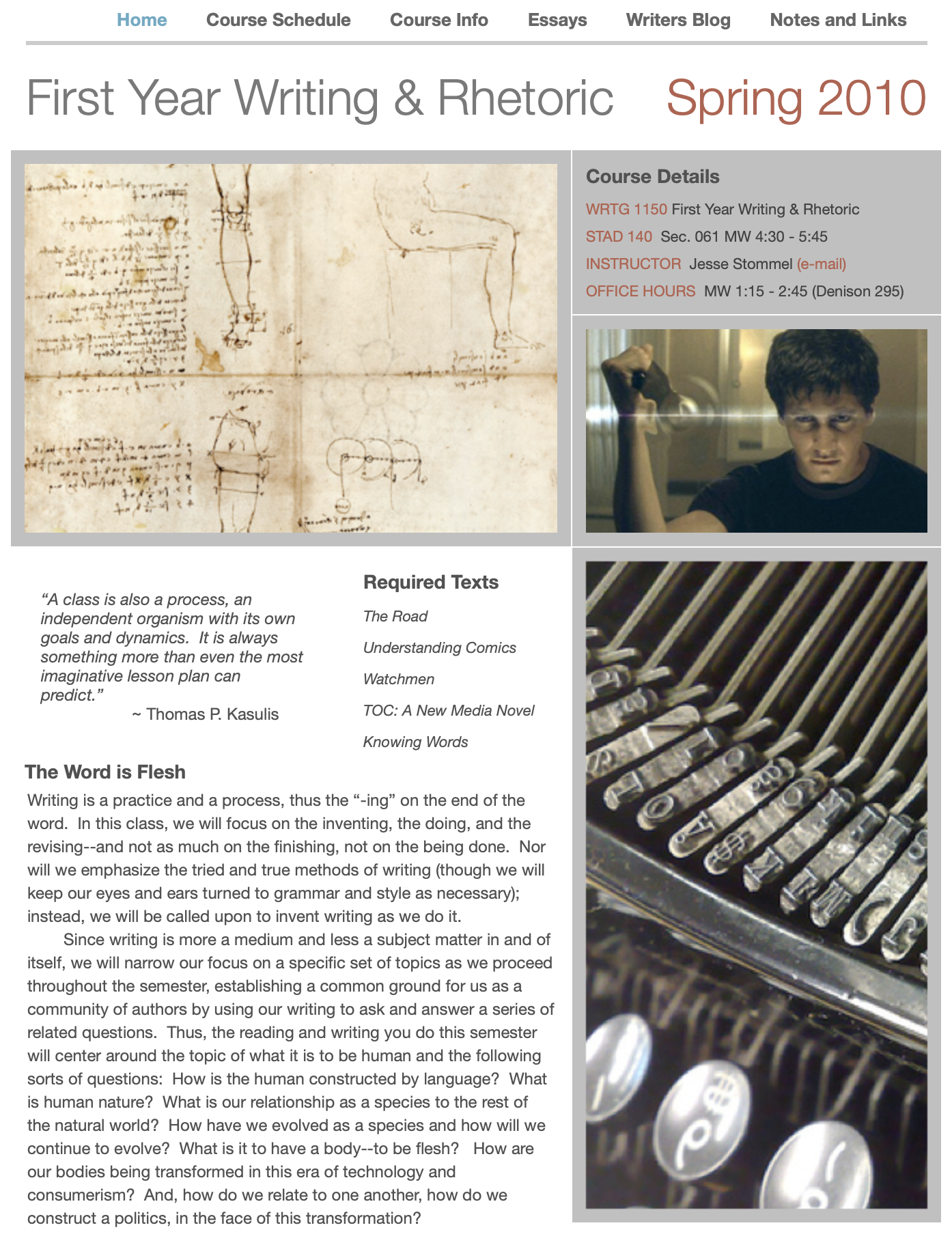 TEXTS AND FILMS: All of the texts of the course have been chosen with several purposes in mind: (1) to serve as representative examples of the various sorts of work we’ll be doing ourselves; (2) as fodder for our own adventures in literary and rhetorical analysis; (3) because they are germane to the various subjects at hand, particularly writing, meaning-making, language, the relationship between words and images, and humans as language/image-makers.